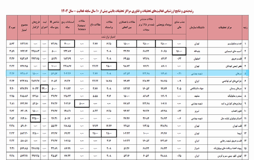 *در میان مراکز با سابقه بیش از یک دهه، مرکز تحقیقات اندوکرینولوژی تولید مثل رتبه پنجم و مرکز پیشگیری از بیماری‌های متابولیک رتبه هشتم را به دست آوردند.