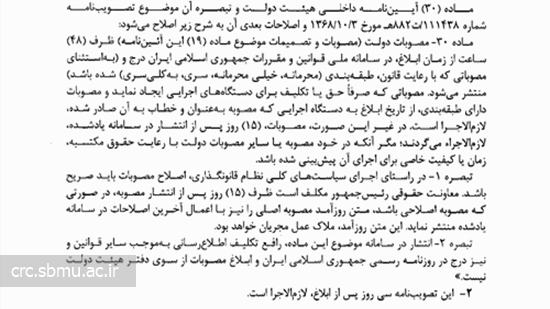 مصوبه هیئت وزیران در خصوص اصلاح ماده 30 آیین نامه داخلی هیئت دولت